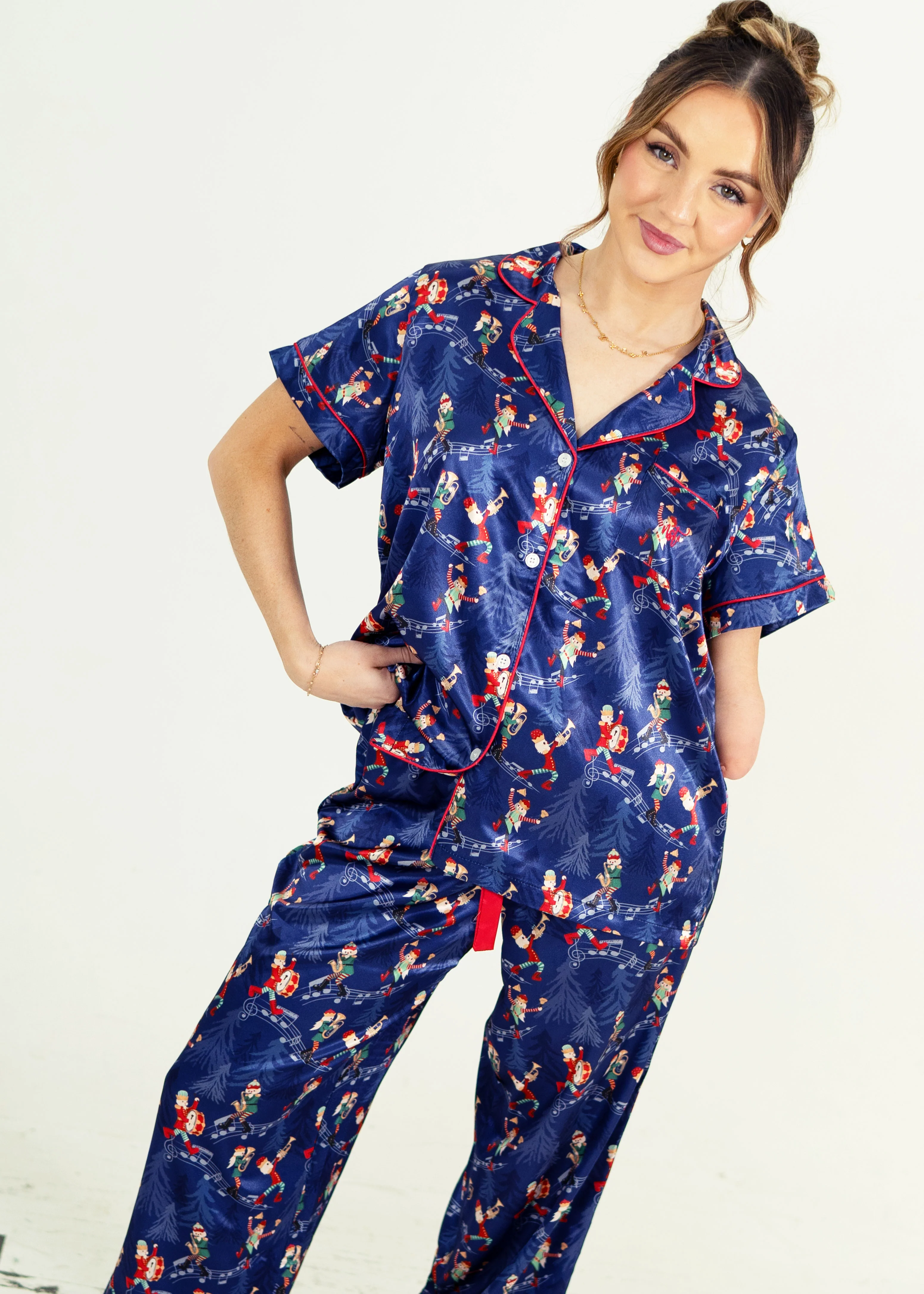 Santa's Workshop Satin Short Top/ Long Pants Pyjama Set