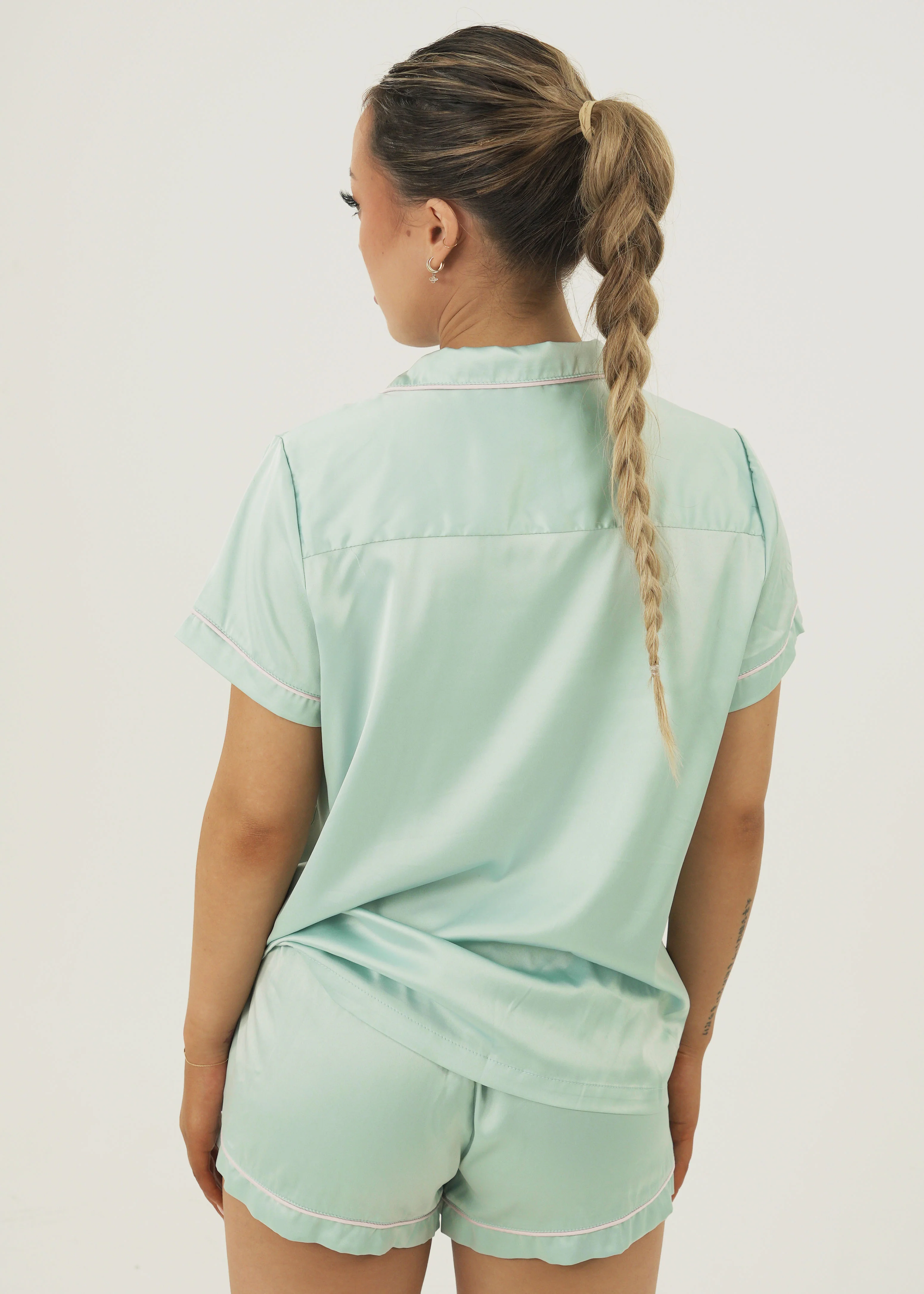 Bubblegum Green Matte Satin Short Pyjama Set